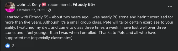 The sessions are based around simple but quality workouts and effective exercises (no running) to increase your ability to be a more active human!, strengthen your weak spots, reduce and improve aches pains that are holding you back – and make you feel good. Our group program and training system is progressive yet offers variation to keep members on their toes ! 😀